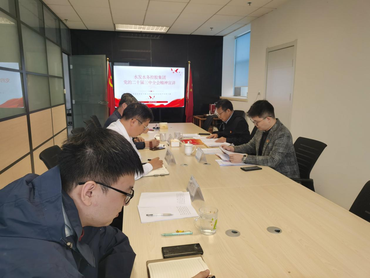 為深入貫徹落實(shí)黨的二十屆三中全會(huì)精神,深刻認(rèn)識(shí)黨的二十屆三中全會(huì)重大意義,水發(fā)水控集團(tuán)各區(qū)域公司以會(huì)前自學(xué)、分組學(xué)習(xí)研討、集中宣講等形式掀起學(xué)習(xí)熱潮。