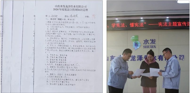 山東水發(fā)龍澤供水有限公司開展“識憲法、學(xué)憲法、懂憲法”宣傳活動,活動分為普法宣傳和憲法知識競賽兩部分。