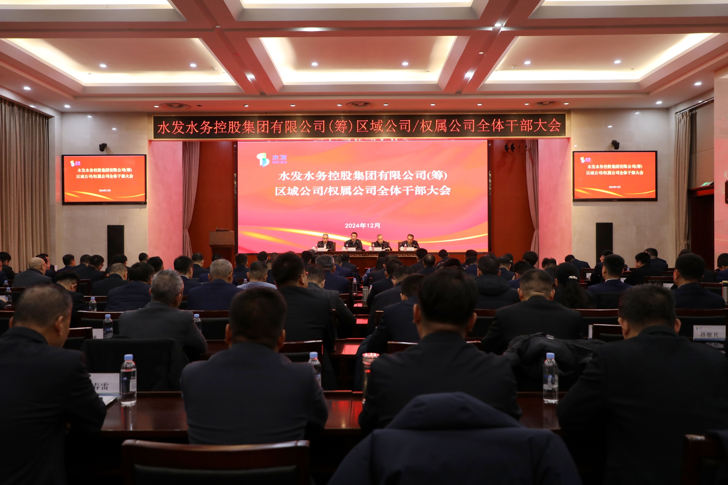 水發(fā)水控集團領導班子成員、總部各部門負責人、區(qū)域公司和權屬公司全體干部參加會議。