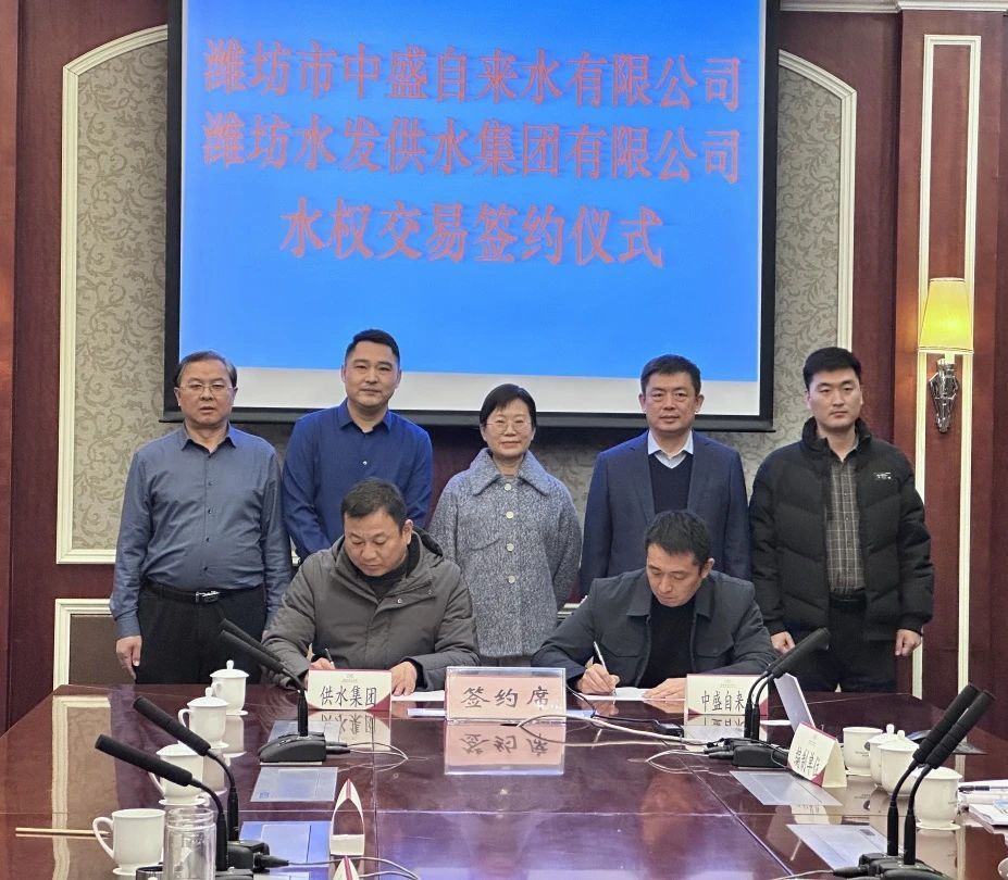 1月2日,濰坊水發(fā)供水集團(tuán)有限公司與濰坊市中盛自來水有限公司舉行水權(quán)交易簽約儀式,標(biāo)志著山東省首例跨區(qū)域取水權(quán)交易成功落地,是深入推進(jìn)水權(quán)改革的標(biāo)志性成果。省水利廳水資源處一級調(diào)研員題偉,濰坊市水利局黨組成員、市水利事業(yè)發(fā)展中心主任韓俊清,峽山區(qū)、濱海區(qū)水利局負(fù)責(zé)人參加評審并見證交易簽約儀式。