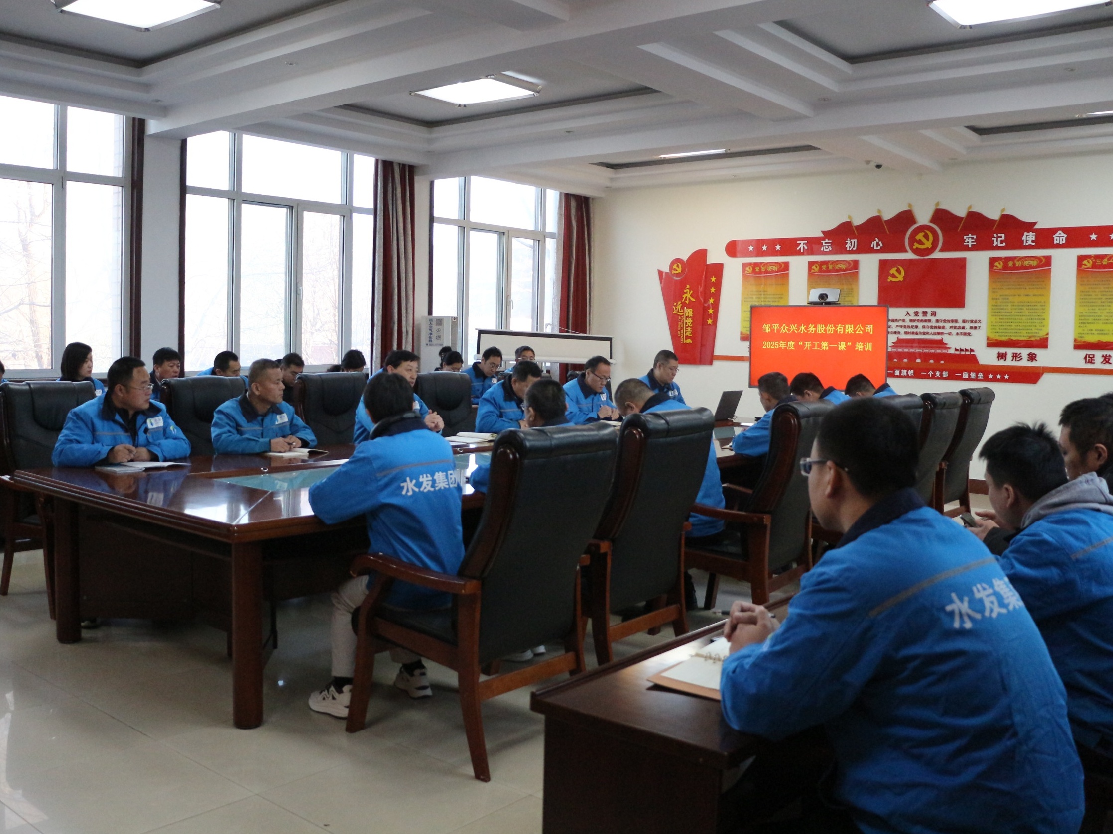 水發(fā)水控股集團領導班子成員、集團總部全體人員現(xiàn)場參會,各區(qū)域公司干部職工線上參會。